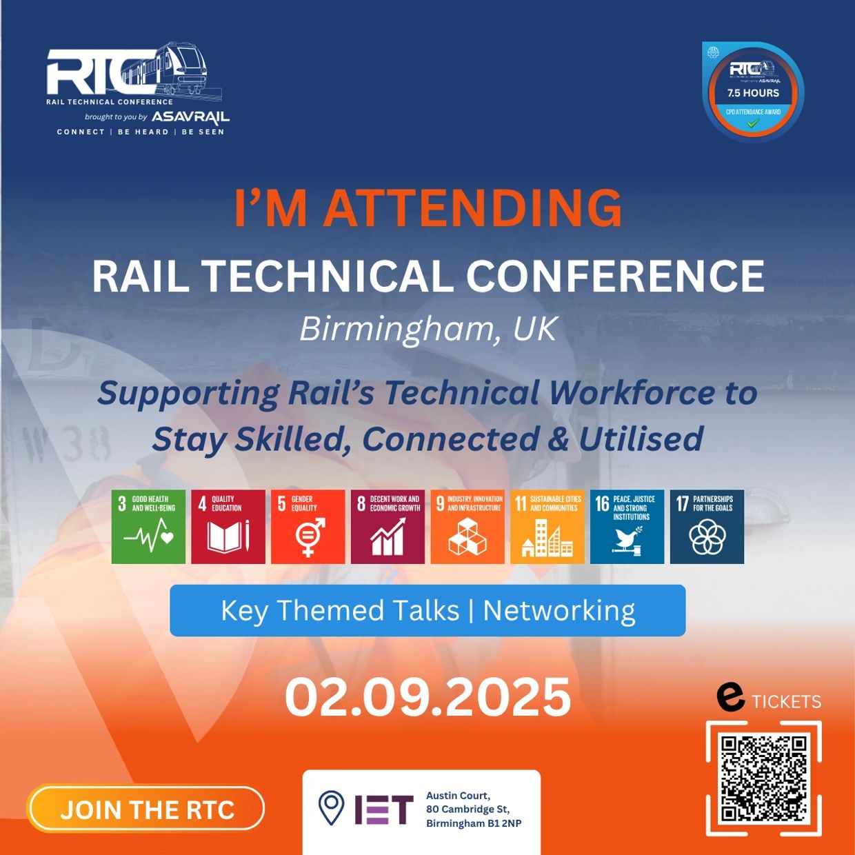 I'm attending RTC 2025 by ASAVRAIL at the IET in Birmingham.